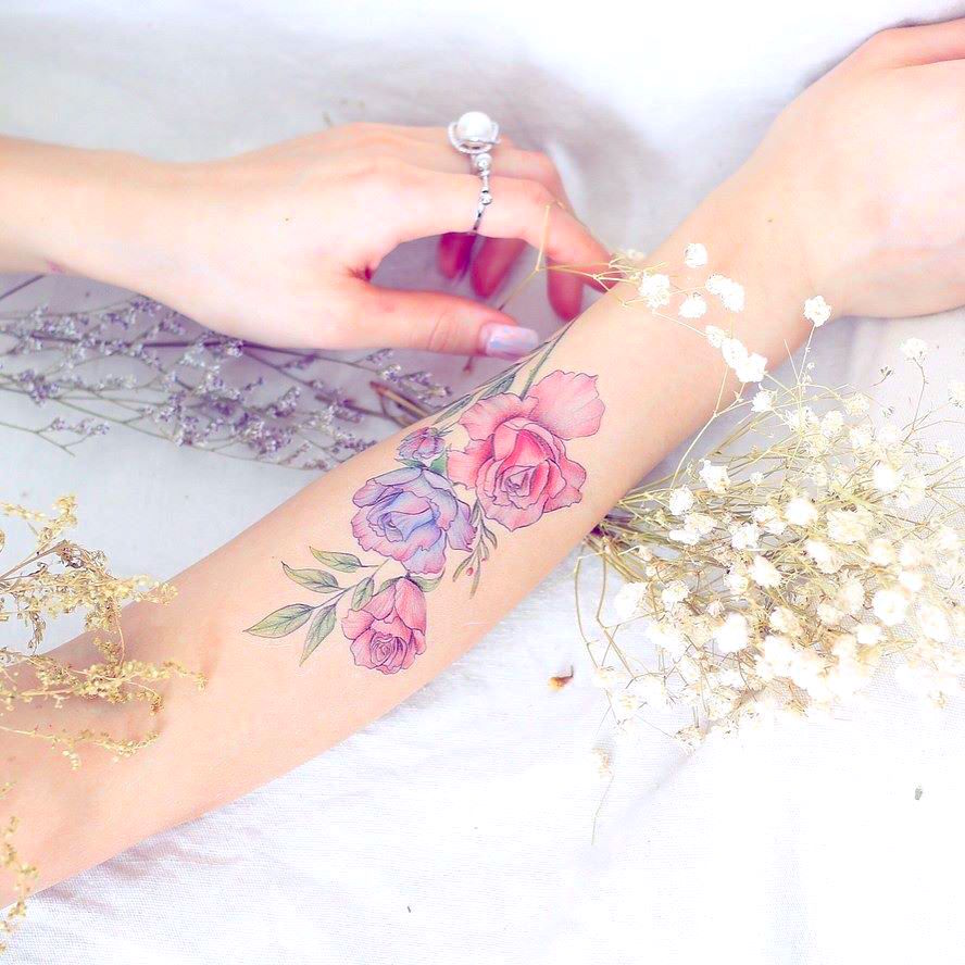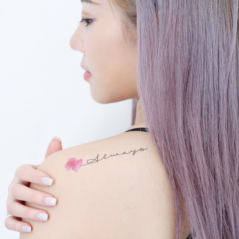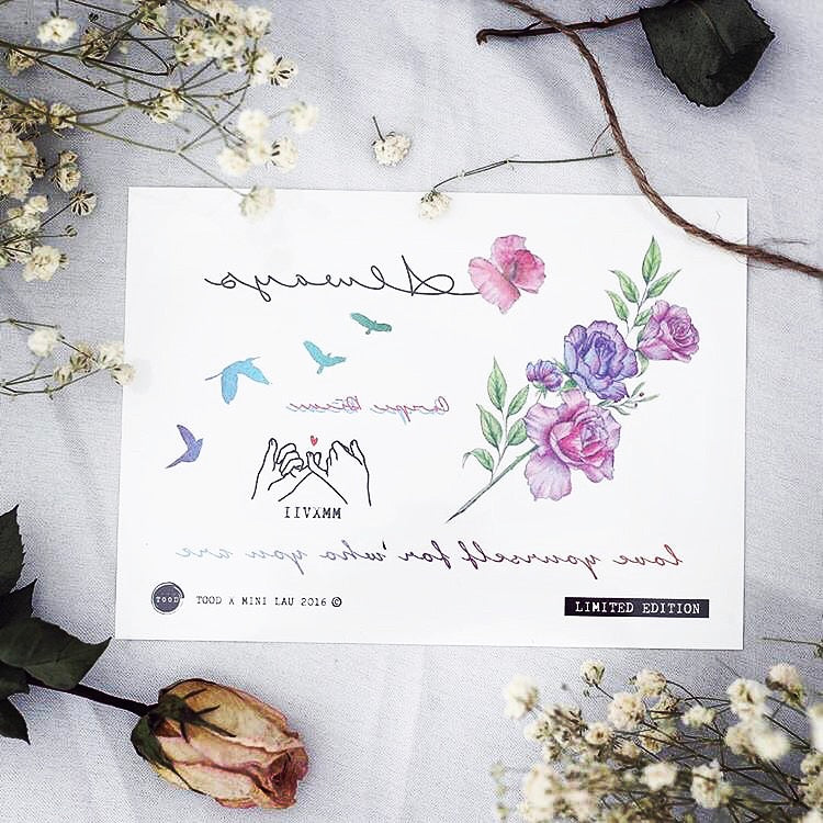 Mini Lau (Instagram: @mini_tattooer) from Mini Tattoo HK is one of the most famous tattooists in Hong Kong. Mini is famous for her rainbow style tattoos and hand-drawn flowers. This collection features some of her most famous work, including her hand-drawn camellia and roses, rainbow words and illusion words.